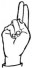 На ћирилици написано ЉУБИСЛАВ ВУЛОВИЋ састоји се из 15 слова [?]. Исписано ћириличном једноручном азбуком за глувонеме: